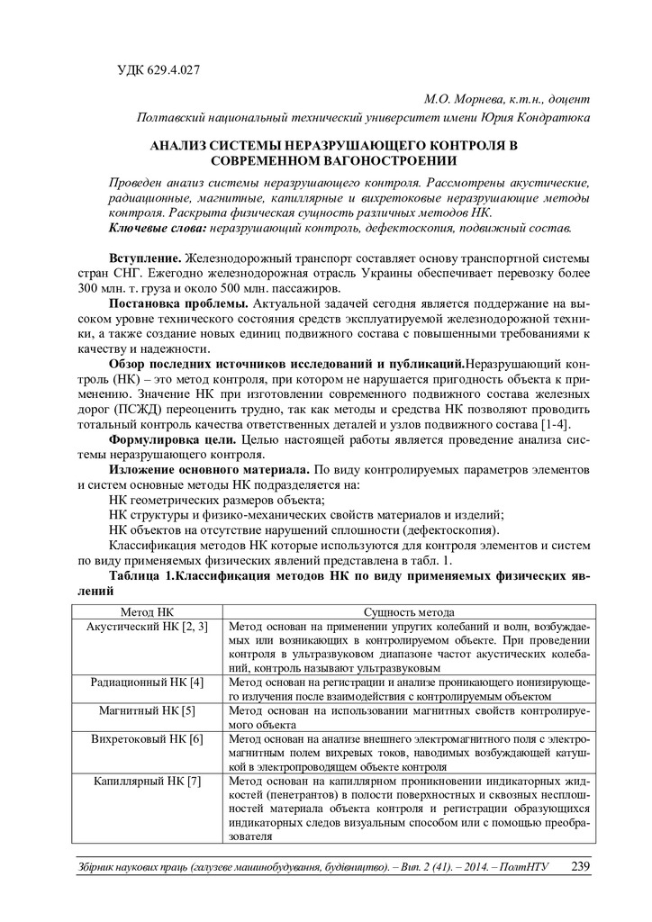 2019/04/18Анализ системы неразрушающего контроля в сосременном вагоностроении