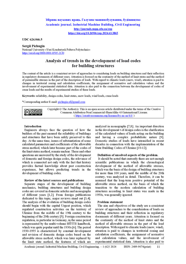 The content of the article is a consistent review of approaches to considering loads on building structures and their reflection in regulatory documents of different years. Attention is focused on ...