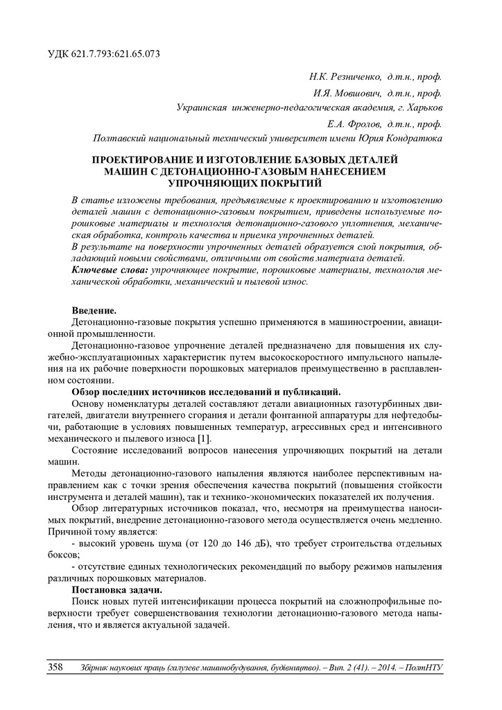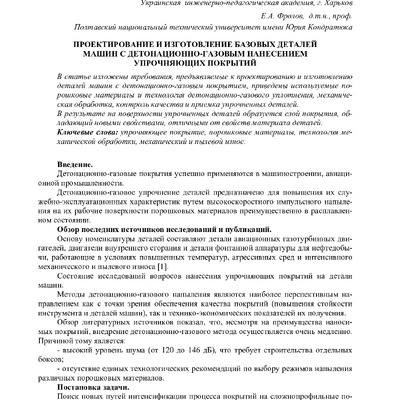 Проектирование и изготовление базовых деталей машин с детонационно-газовым нанесением упрочняющих покрытий
