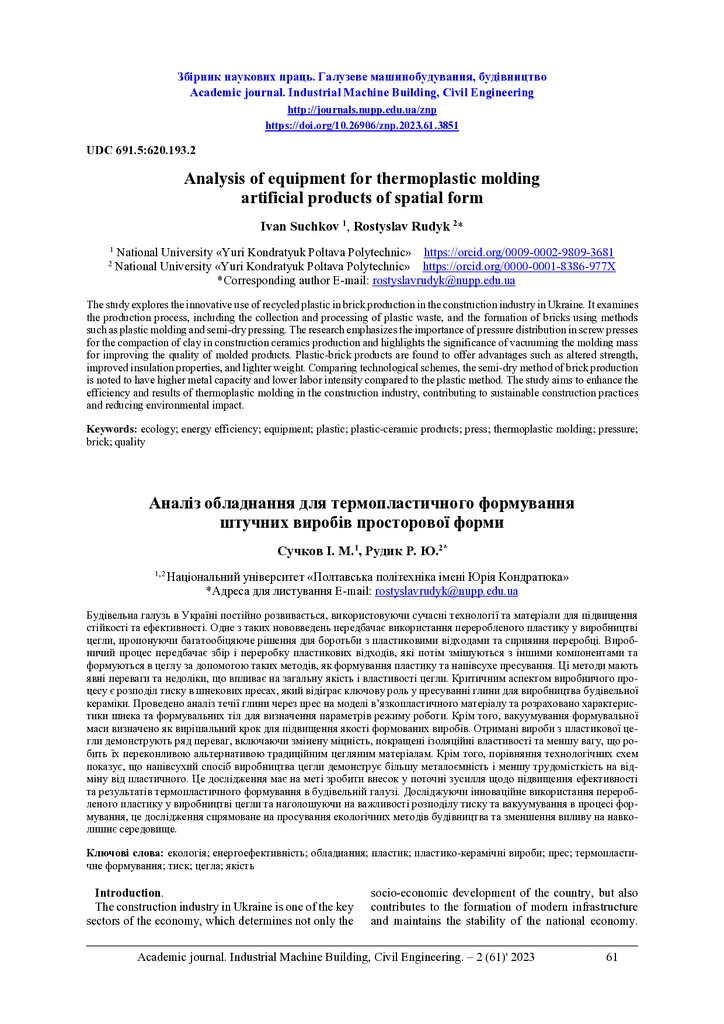 The study explores the innovative use of recycled plastic in brick production in the construction industry in Ukraine. It examines the production process, including the collection and processing of...