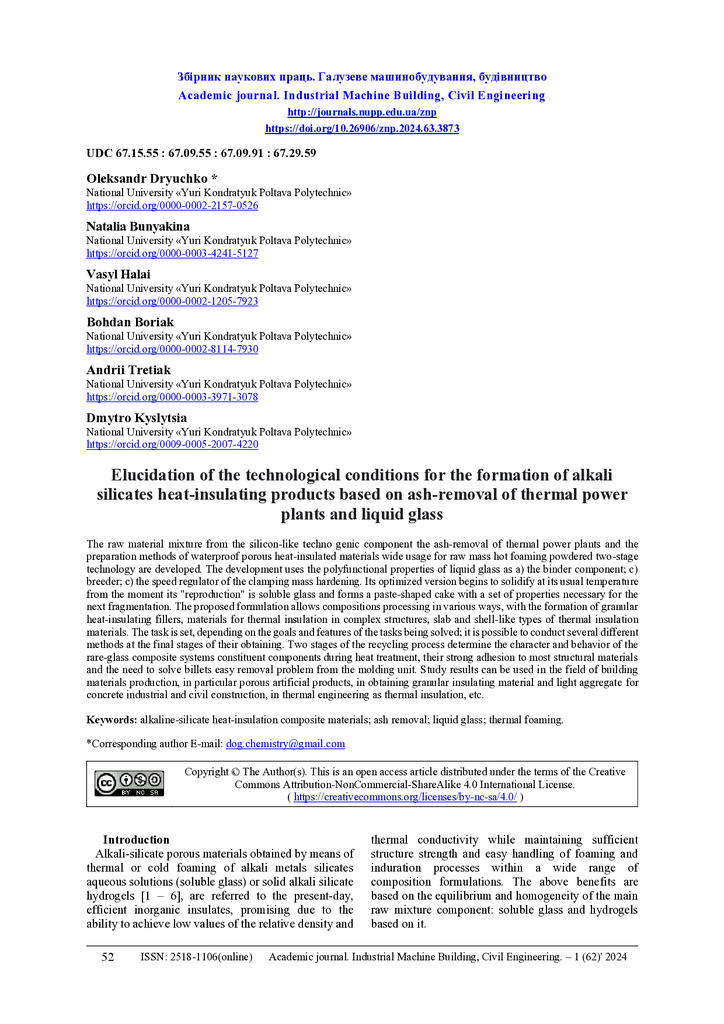 Elucidation of the technological conditions for the formation of alkali silicates heat-insulating products based on ash-removal of thermal power plants and liquid glass