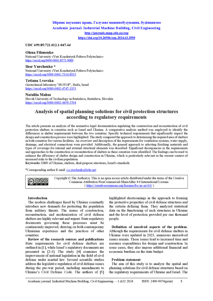 The article presents an analysis of the normative-legal documentation regulating the construction and reconstruction of civil protection shelters in countries such as Israel and Ukraine. A comparat...