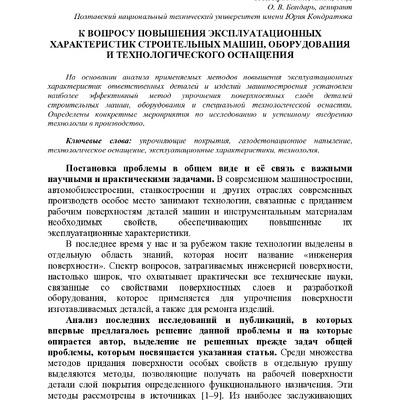 К вопросу повышения эксплуатационных характеристик строительных машин, оборудования и технологического оснащения