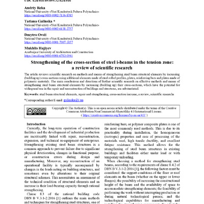 2025/10/02Strengthening of the cross-section of steel i-beams in the tension zone: a review of scientific research