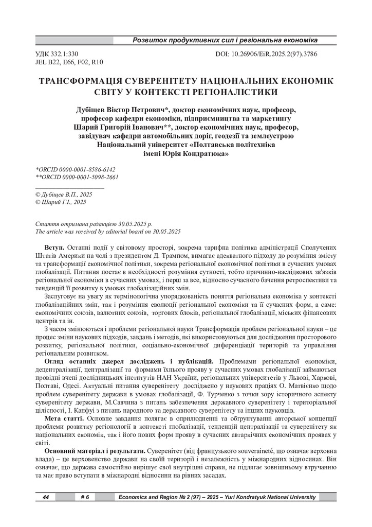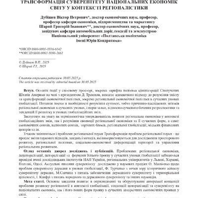 2025/07/17Трансформація суверенітету національних економік світу у контексті регіоналістики