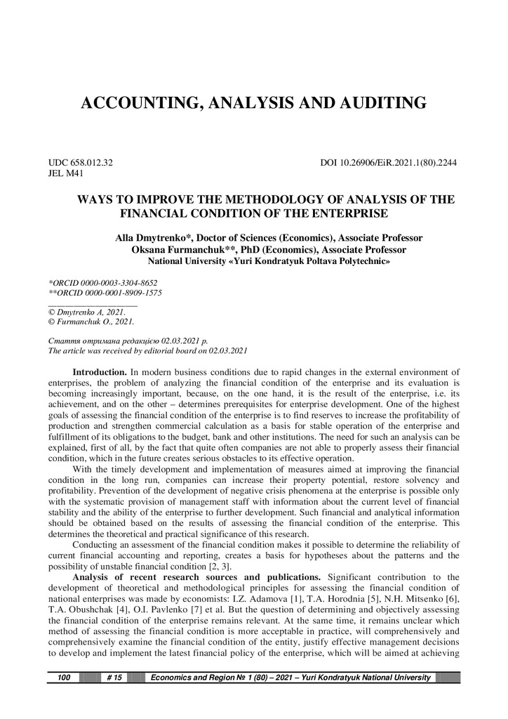 2025/06/12Ways to Improve the Methodology of Analysis of the Financial Condition of the Enterprise