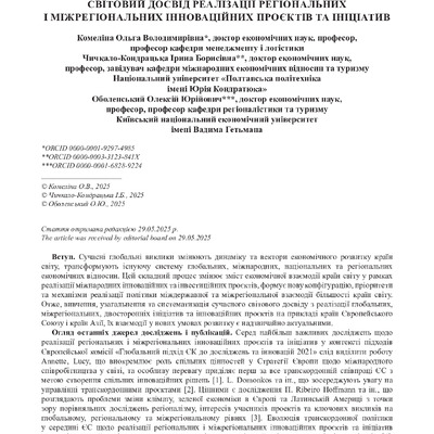 Світовий досвід реалізації регіональних і міжрегіональних інноваційних проєктів та ініціатив