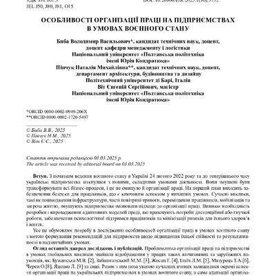 2025/06/12Особливості організації праці на підприємствах в умовах воєнного стану