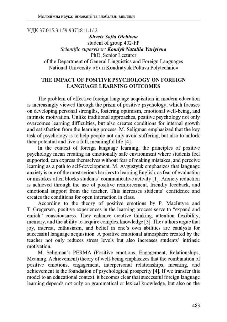 2026/01/27Граматика іноземної мови як один із домінувальних чинників формування мовної особистості (на прикладі граматики англійської мови)
