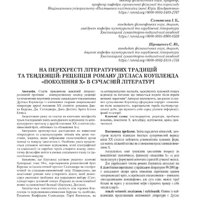 2026/01/23На перехресті літературних традицій та тенденцій: рецепція роману Дуґласа Коупленда «Покоління X» в сучасній літературі