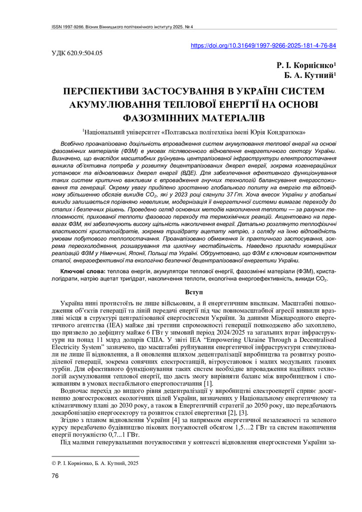 2025/12/25Перспективи застосування в Україні систем акумулювання теплової енергії на основі фазозмінних матеріалів