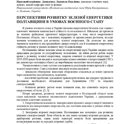 Перспективи розвитку зеленої енергетики полтавщини в умовах воєнного стану