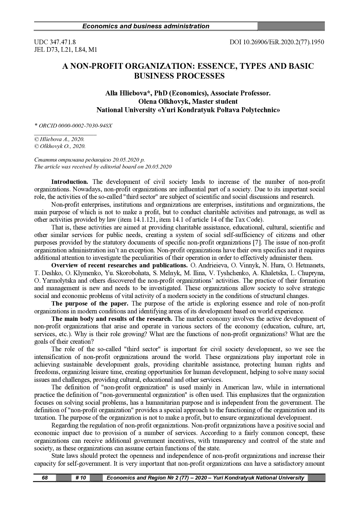 A non-profit organization: essence, types and basic business processes