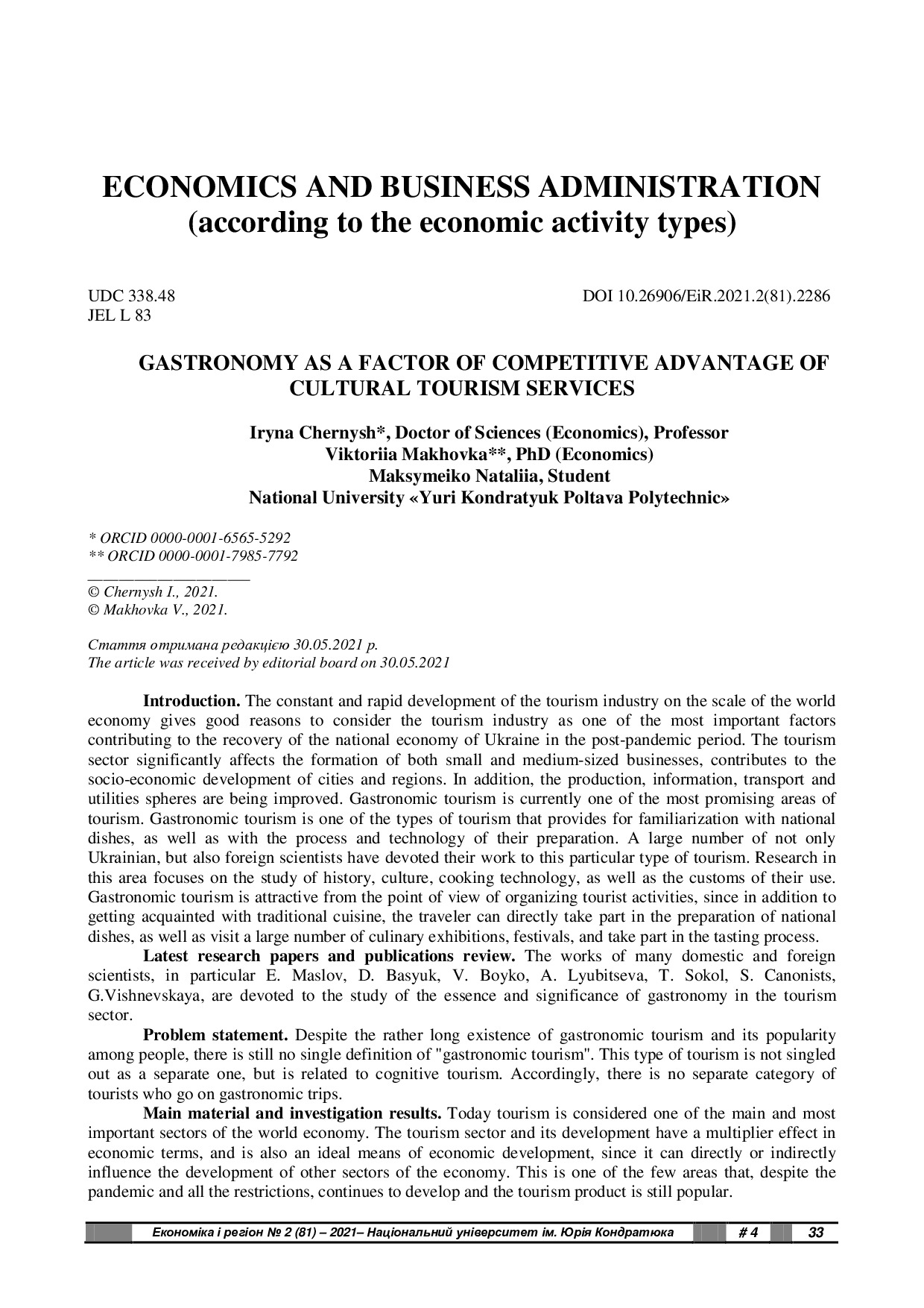 Gastronomy as a Factor of Competitive Advantage of Cultural Tourism Services