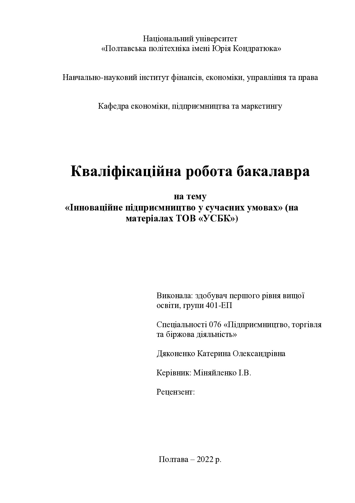 Інноваційне підприємництво у сучасних умовах (на матеріалах ТОВ «УСБК»)