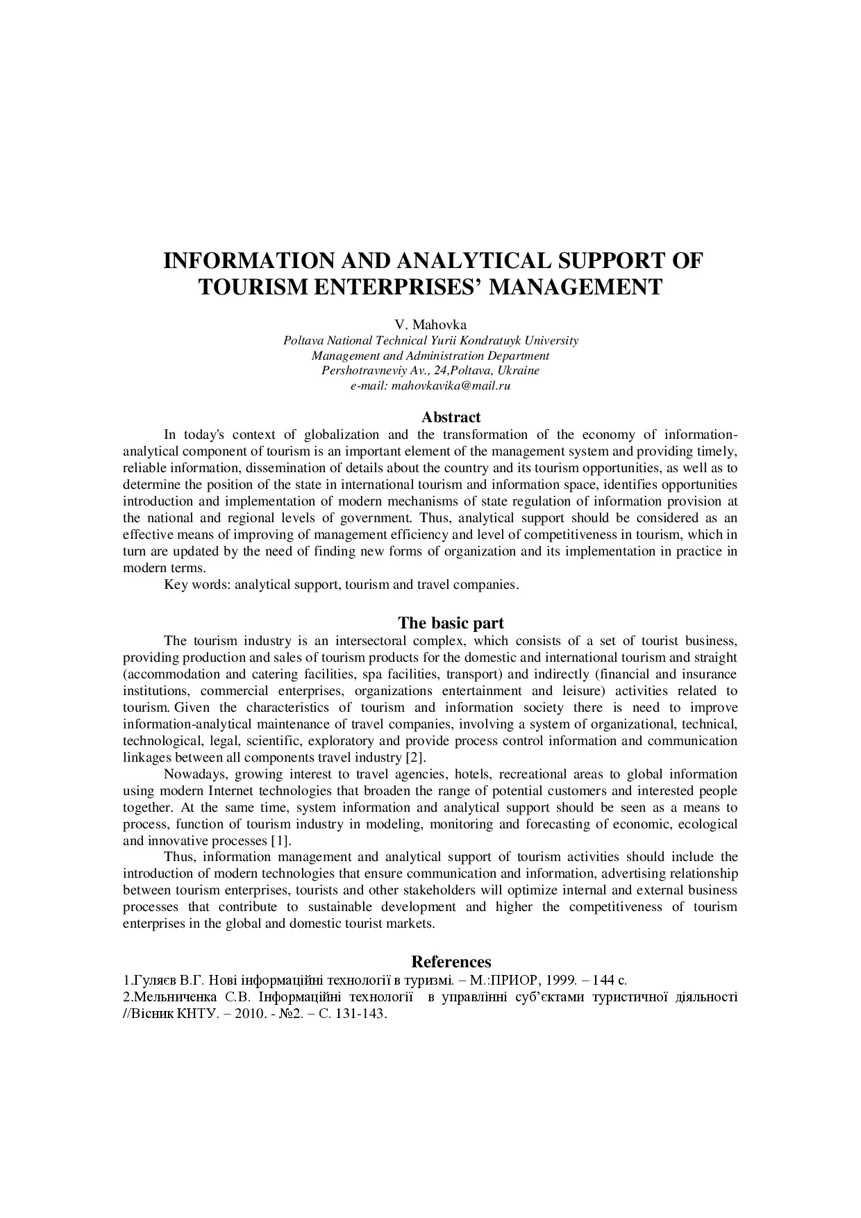 Information and analytical support of tourism enterprises’ management