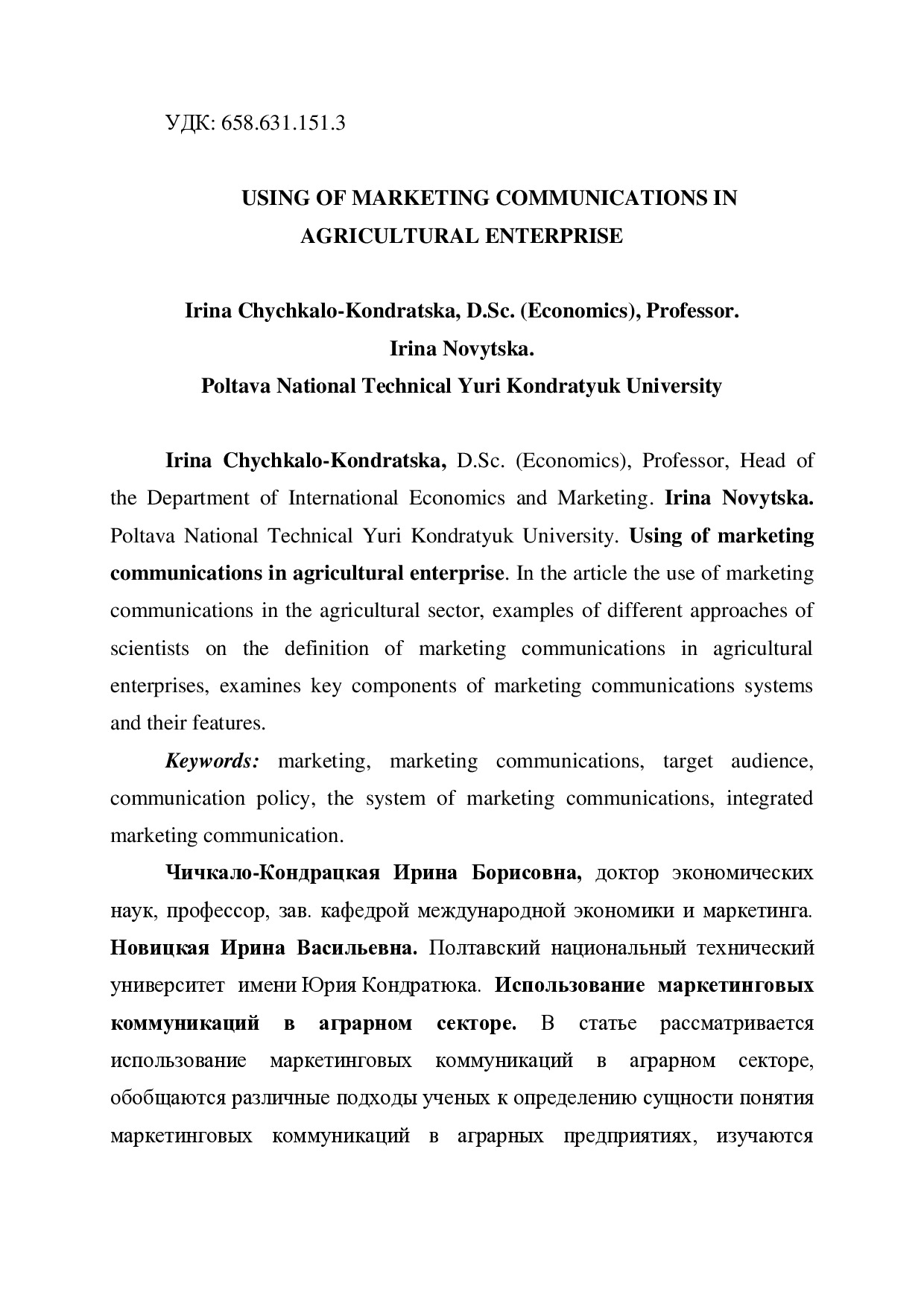 Using of marketing communications in agricultural enterprise