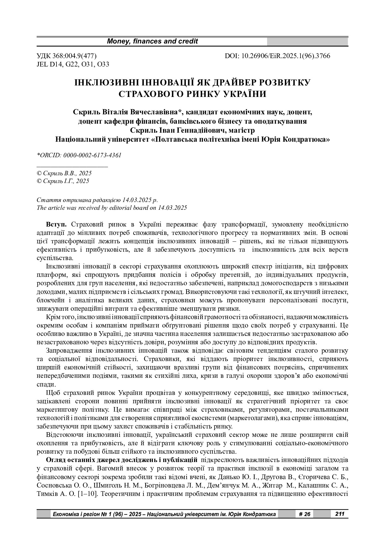 Інклюзивні інновації як драйвер розвитку страхового ринку України