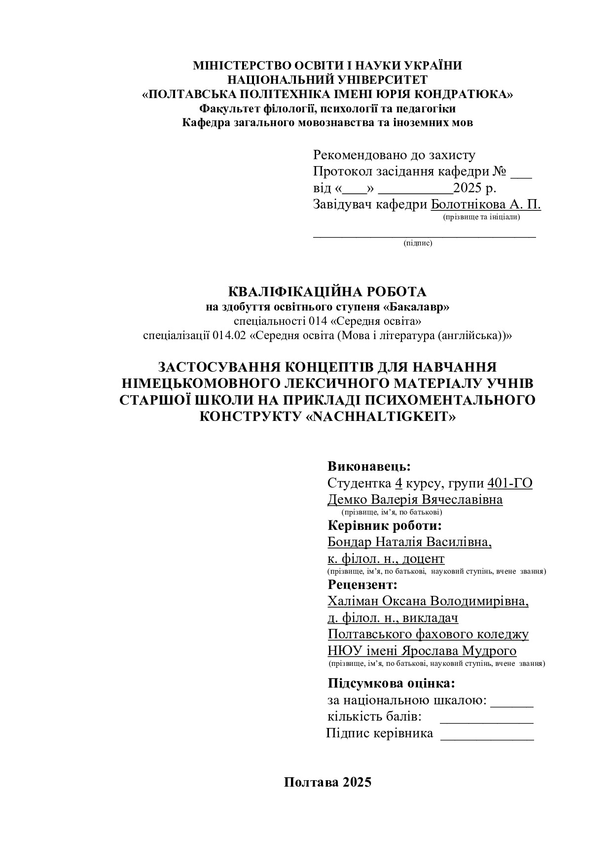 Застосування концептів для навчання німецькомовного лексичного матеріалу учнів старшої школи на прикладі психоментального конструкту «NАCHHАLTІGKЕІT»