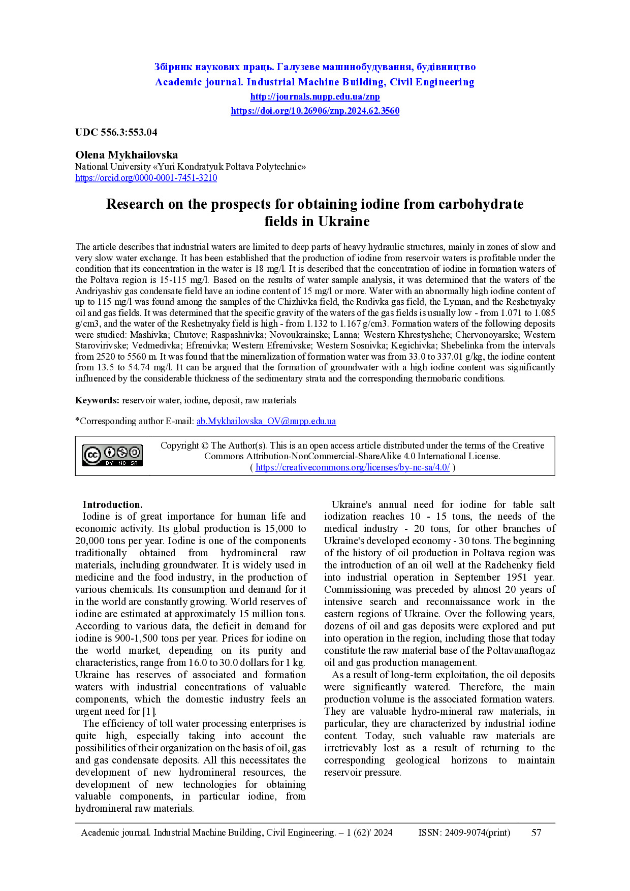 Research on the prospects for obtaining iodine from carbohydratefields in Ukraine