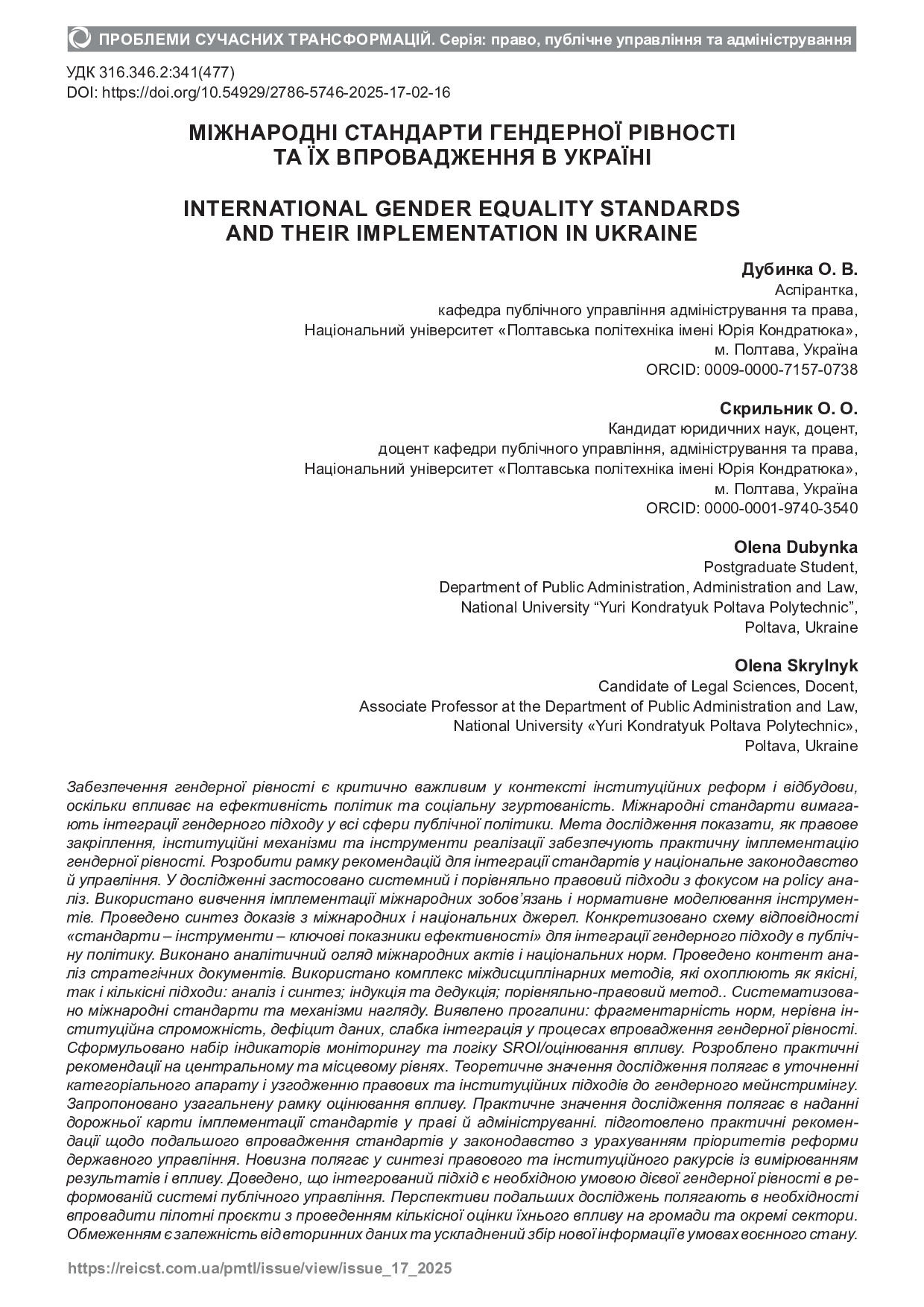 Міжнародні стандарти гендерної рівності та їх впровадження в Україні