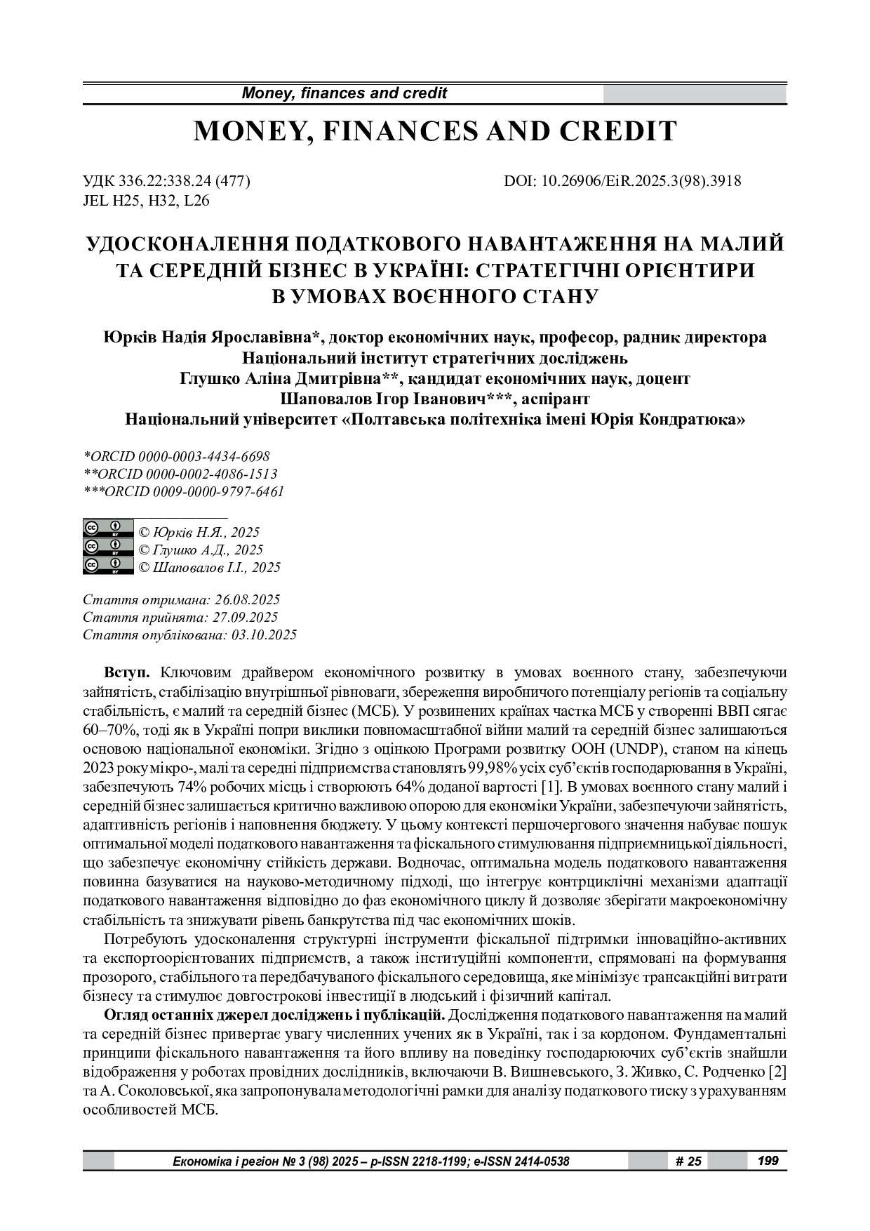 Удосконалення податкового навантаження на малий та середній бізнес в Україні : стратегічні орієнтири в умовах воєнного стану