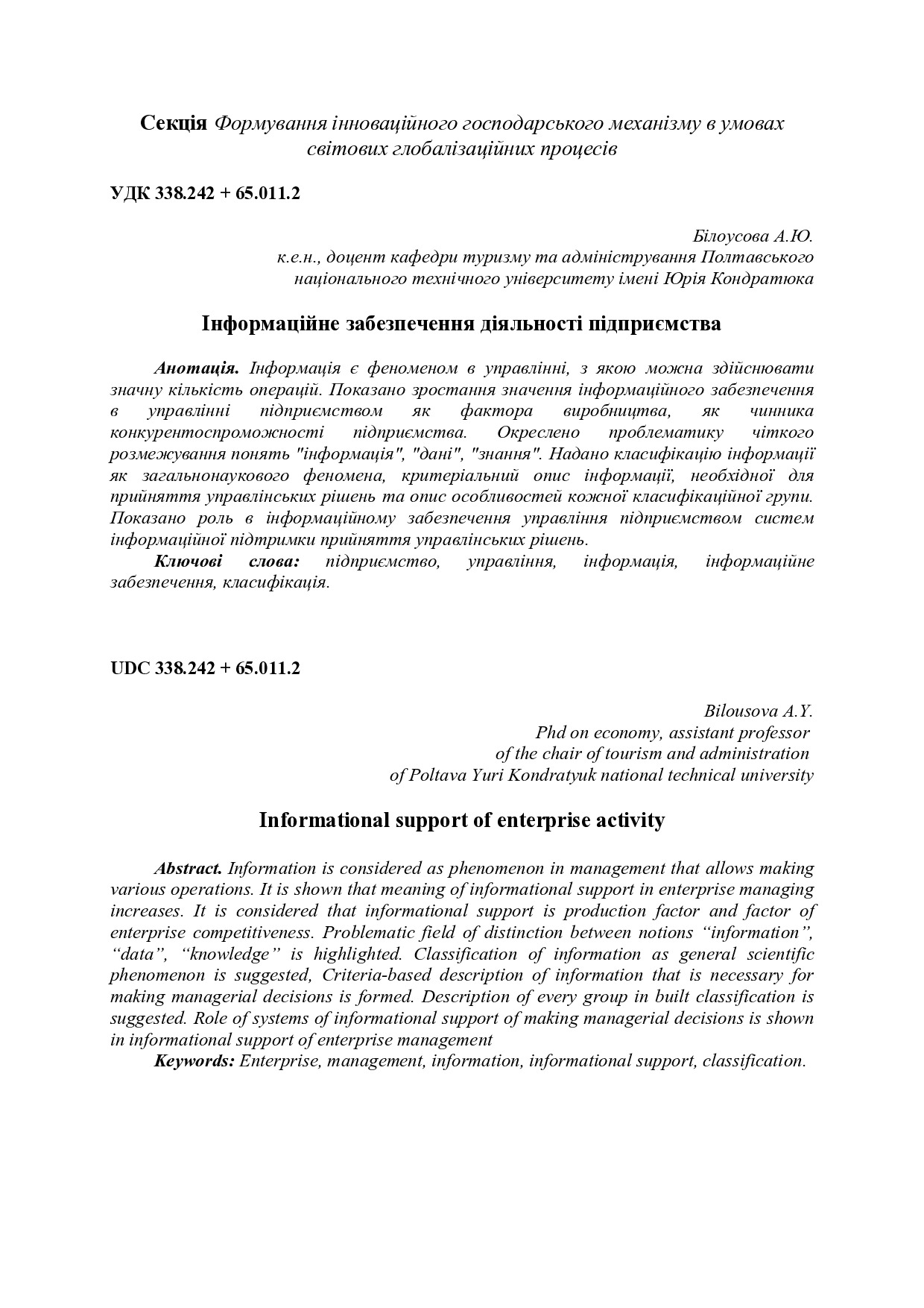 Інформаційне забезпечення діяльності підприємства
