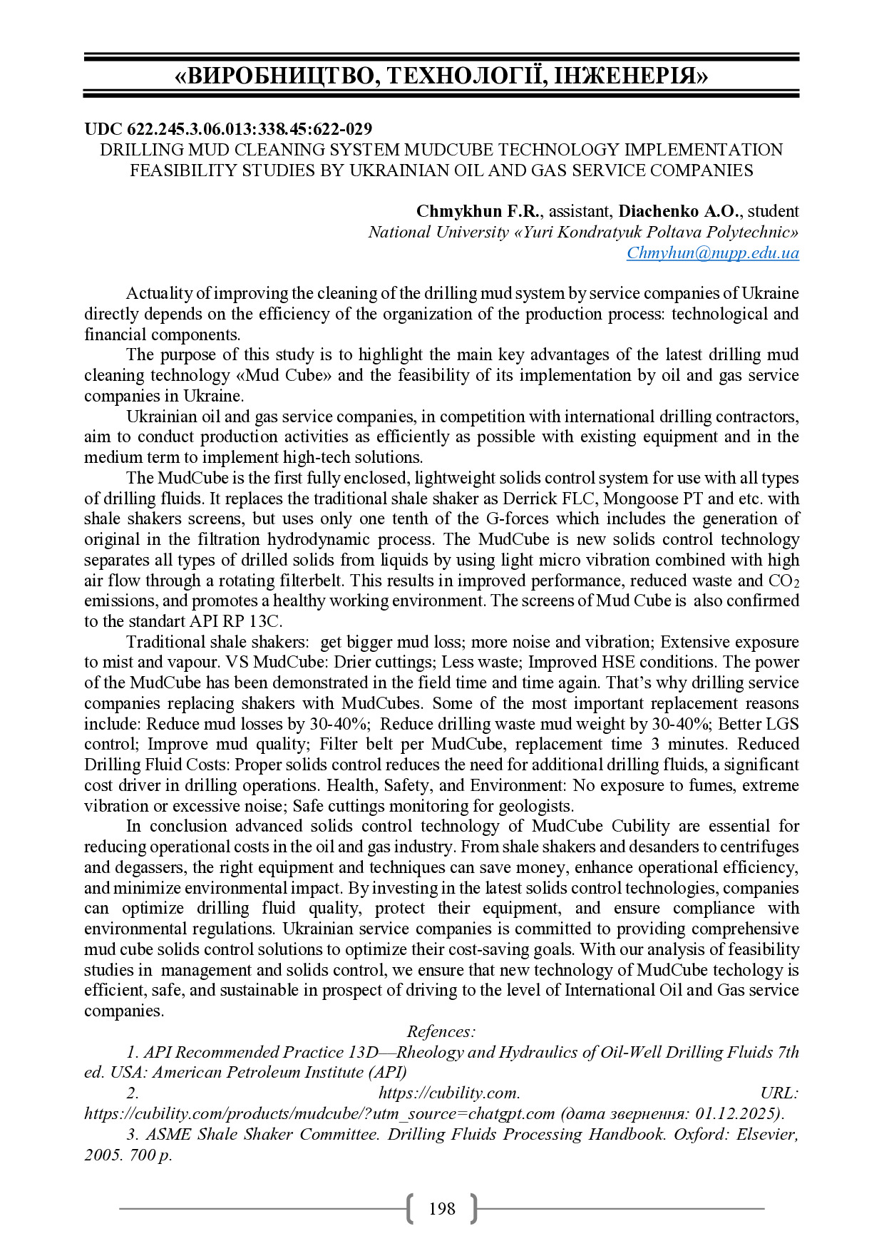 Drilling mud cleaning system Mudcube technology implementation feasibility studies by ukrainian oil and gas service companies