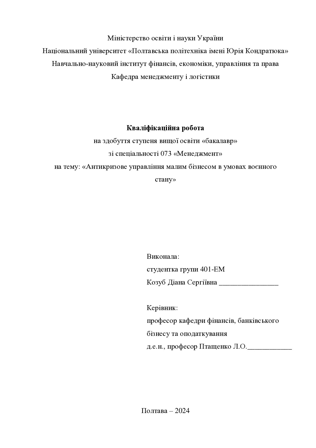 Антикризове управління малим бізнесом в умовах воєнного стану