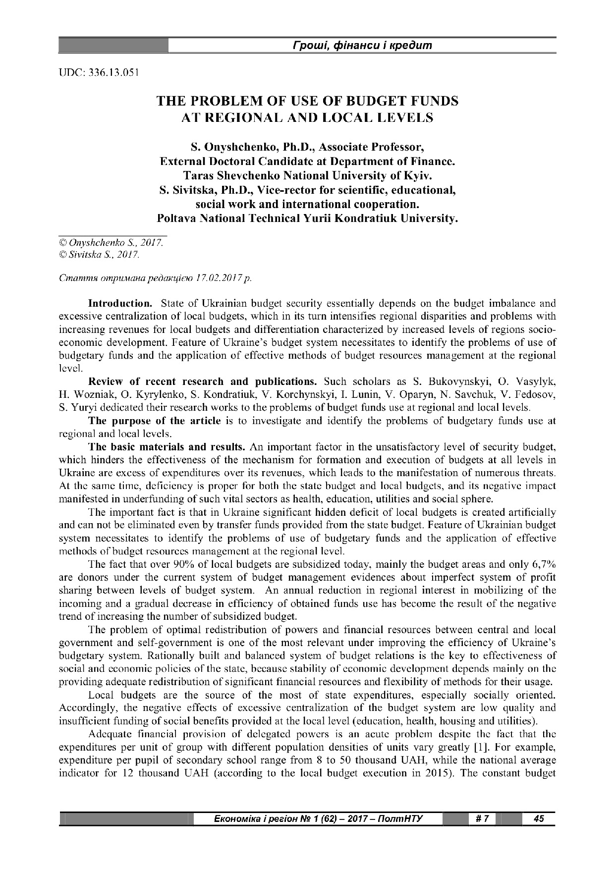 The Problem of Use of Budget Funds at Regional and Local Levels
