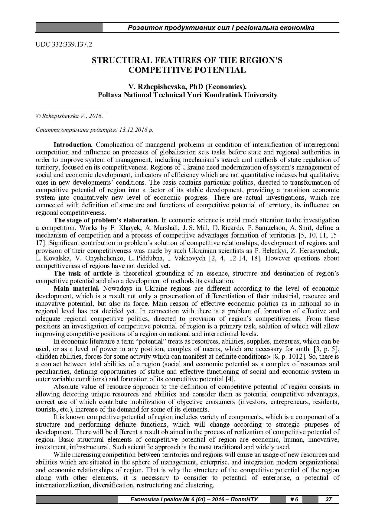 Structural Features of the Region’s Competitive Potential