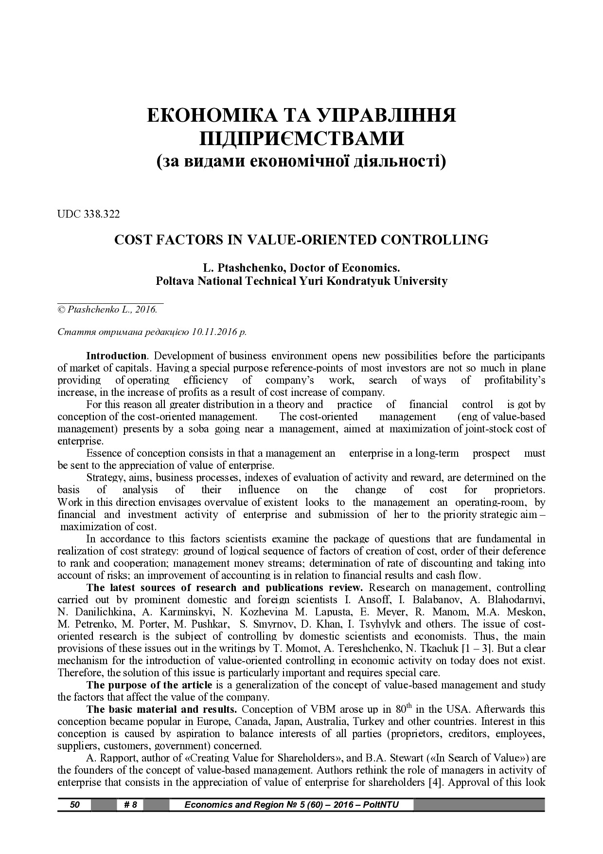 Cost factors in value-oriented controlling