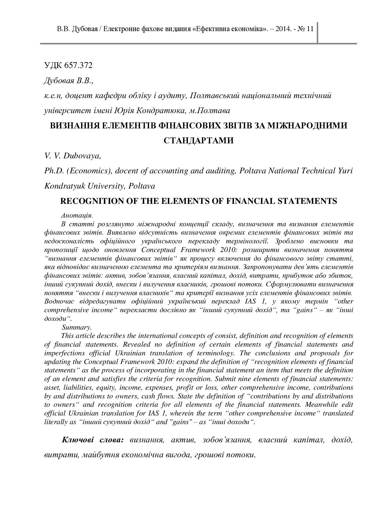 Визнання елементів фінансових звітів за міжнародними стандартами