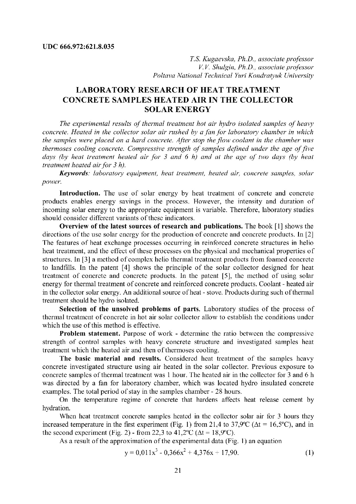 Laboratory research of heat treatment concrete samples heated air in the collector solar energy