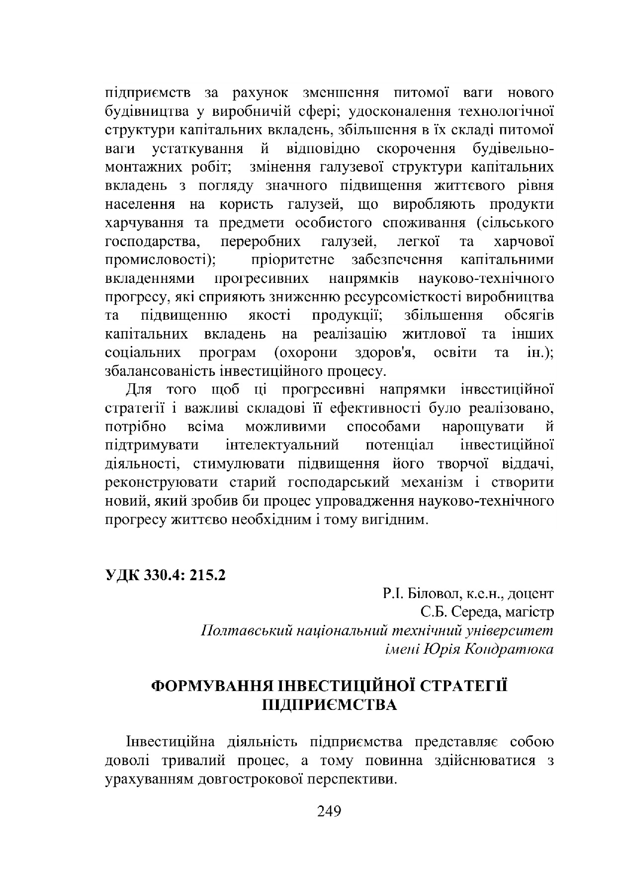 Формування інвестиційної стратегії підприємства
