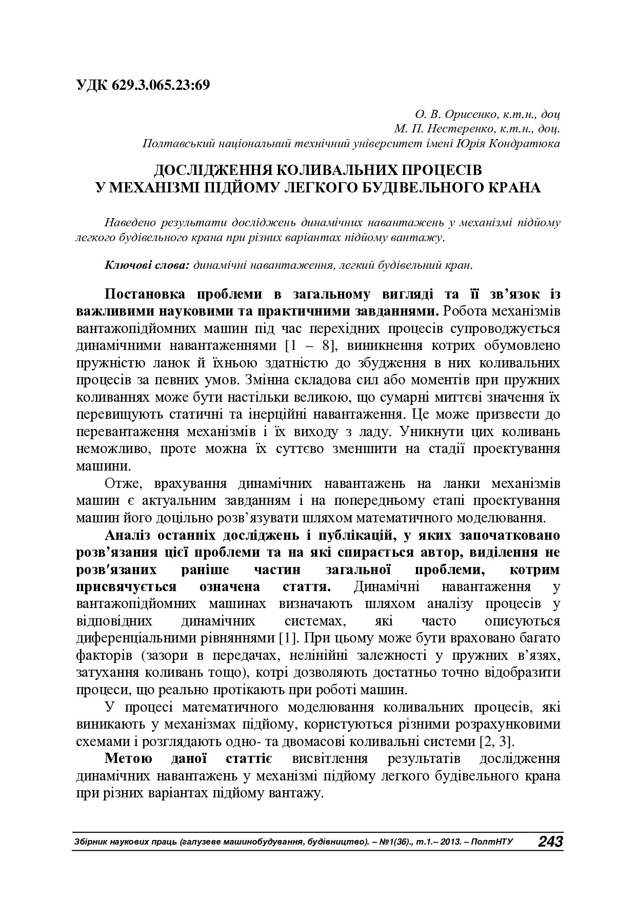 - Фахові видання Національного університету Полтавська політехніка імені Юрія Кондратюка"" » Збірник наукових праць. Серія: Галузеве машинобудування, будівництво » ЗНП. Серія: Галузеве машинобудування, будівницво. 2013. № 1 (36), т. 1