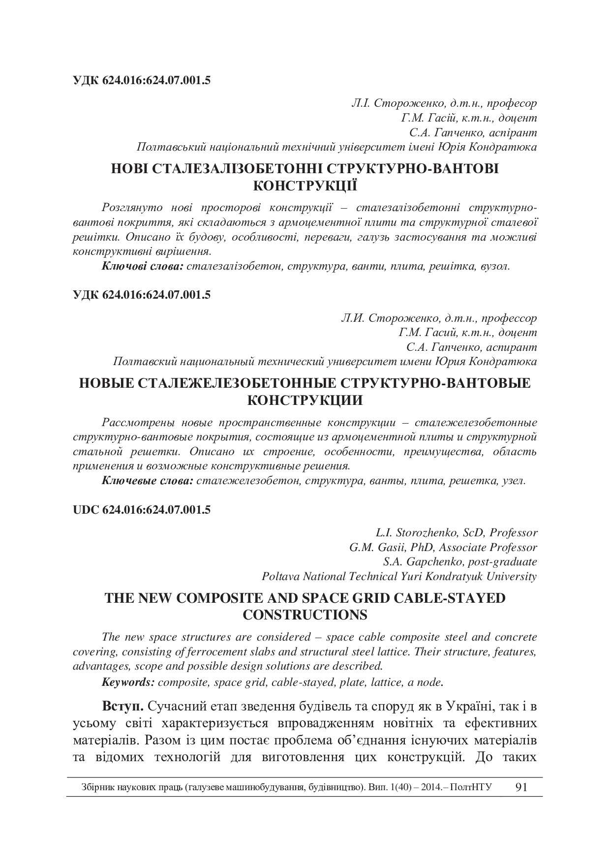 - Фахові видання Національного університету Полтавська політехніка імені Юрія Кондратюка"" » Збірник наукових праць. Серія: Галузеве машинобудування, будівництво » ЗНП. Серія: Галузеве машинобудування, будівницво. 2014. № 1 (40)