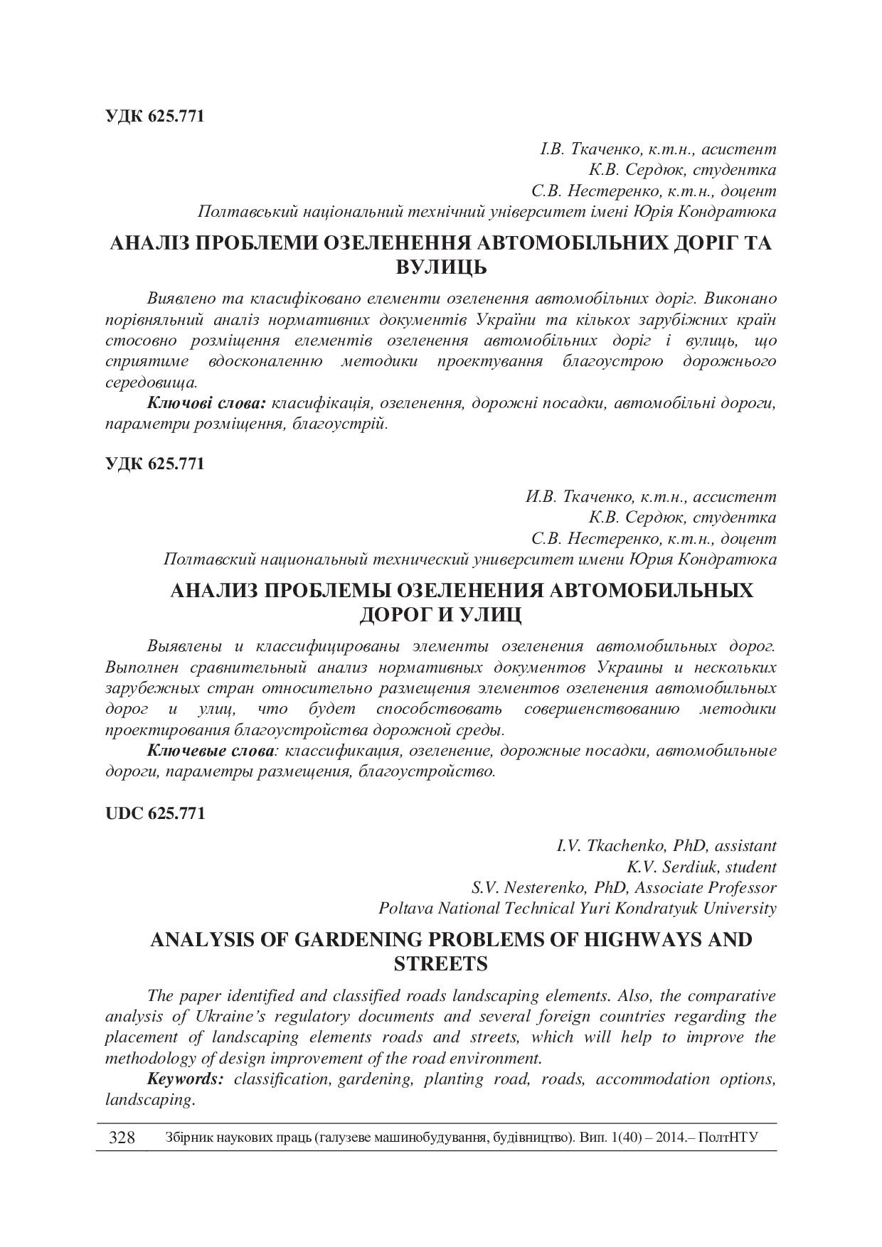 Аналіз проблеми озеленення автомобільних доріг та вулиць