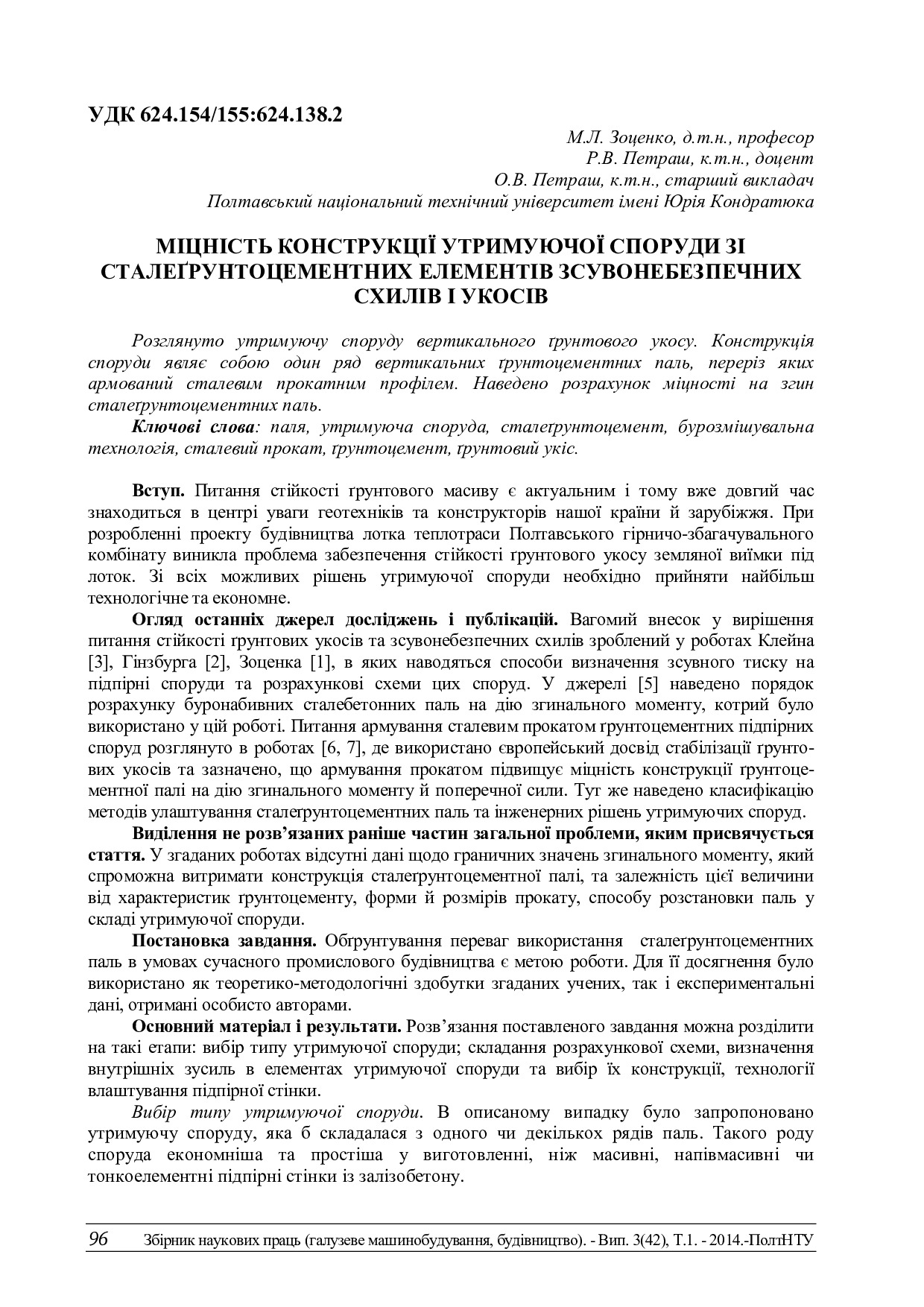 Міцність конструкції утримуючої споруди зі сталегрунтоцементних елементів зсувонебезпечних схилів і укосів