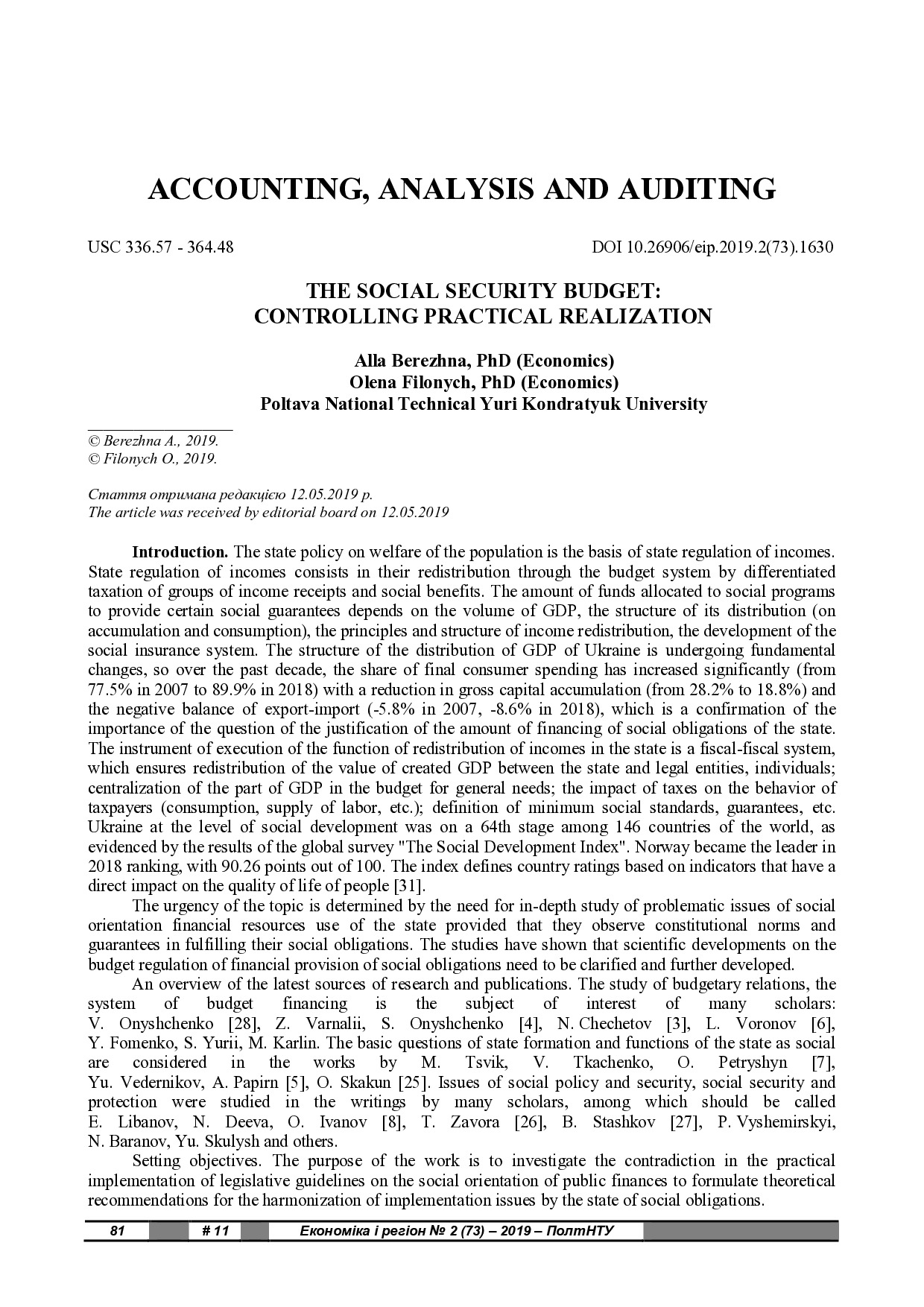 The Social Security Budget: Controlling Practical Realization