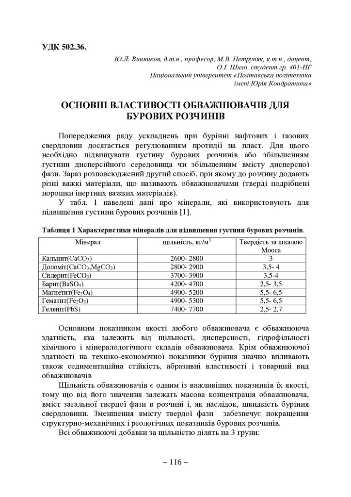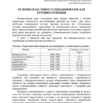Основні властивості обважнювачів для бурових розчинів
