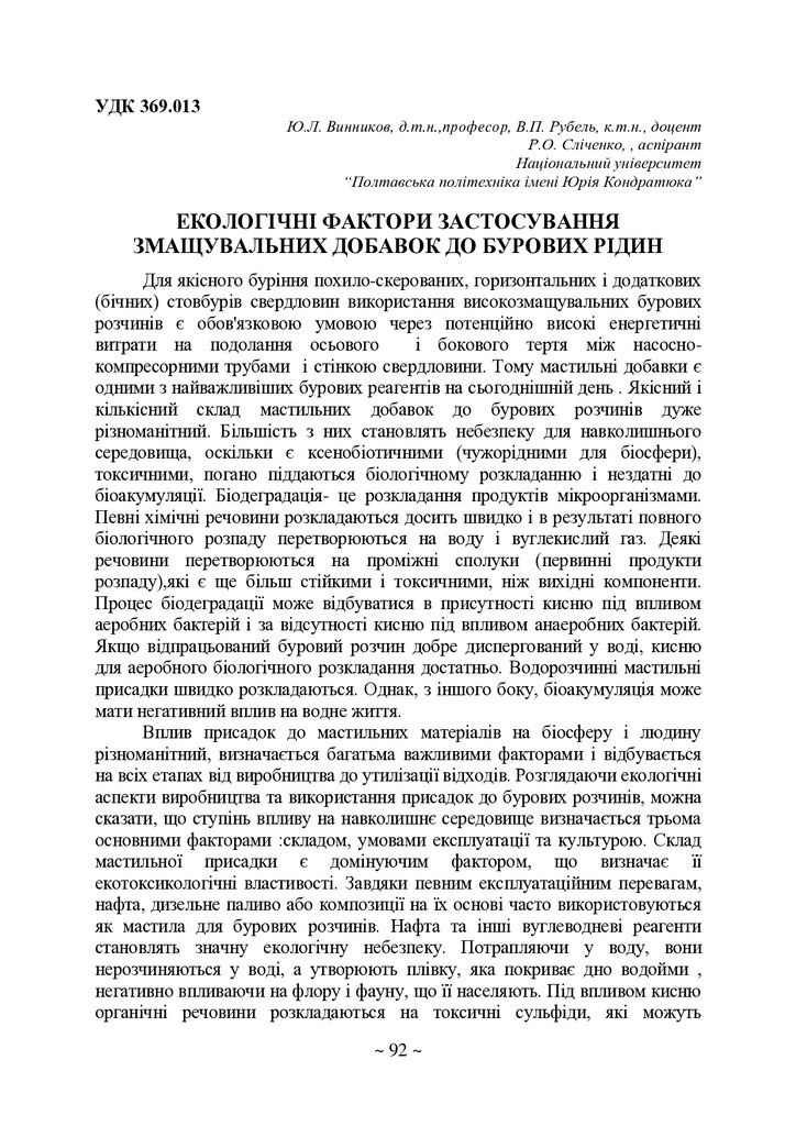 Стаття 2025/05/01Екологічні фактори застосування змащувальних добавок до бурових рідин
