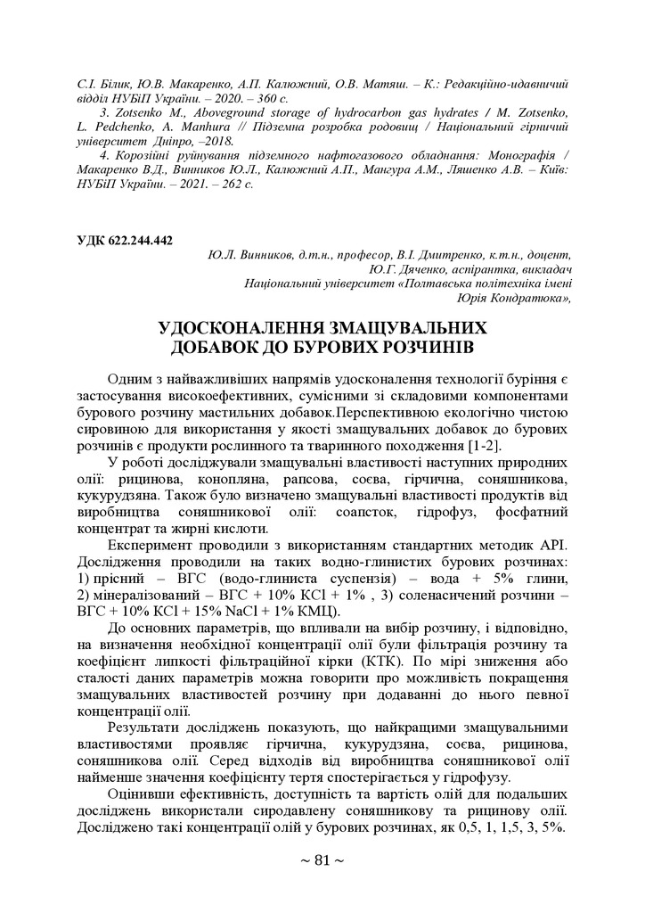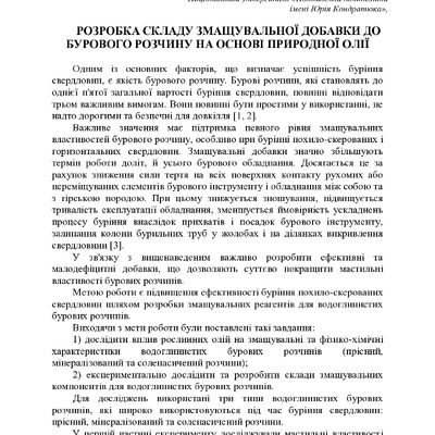 Стаття 2025/05/01Розробка складу змащувальної добавки до бурового розчину на основі природної олії