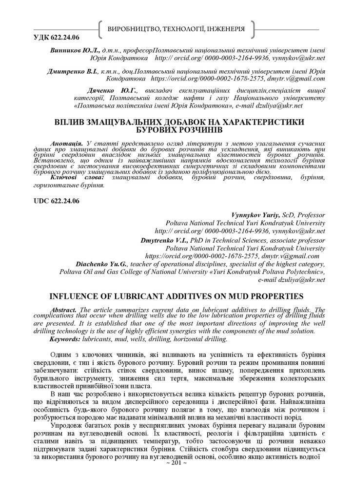 Стаття 2025/05/19Вплив змащувальних добавок на характеристики бурових розчинів