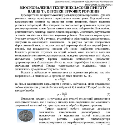 Одним із основних факторів, що визначає успішність буріння свердловин, є якість бурового розчину....