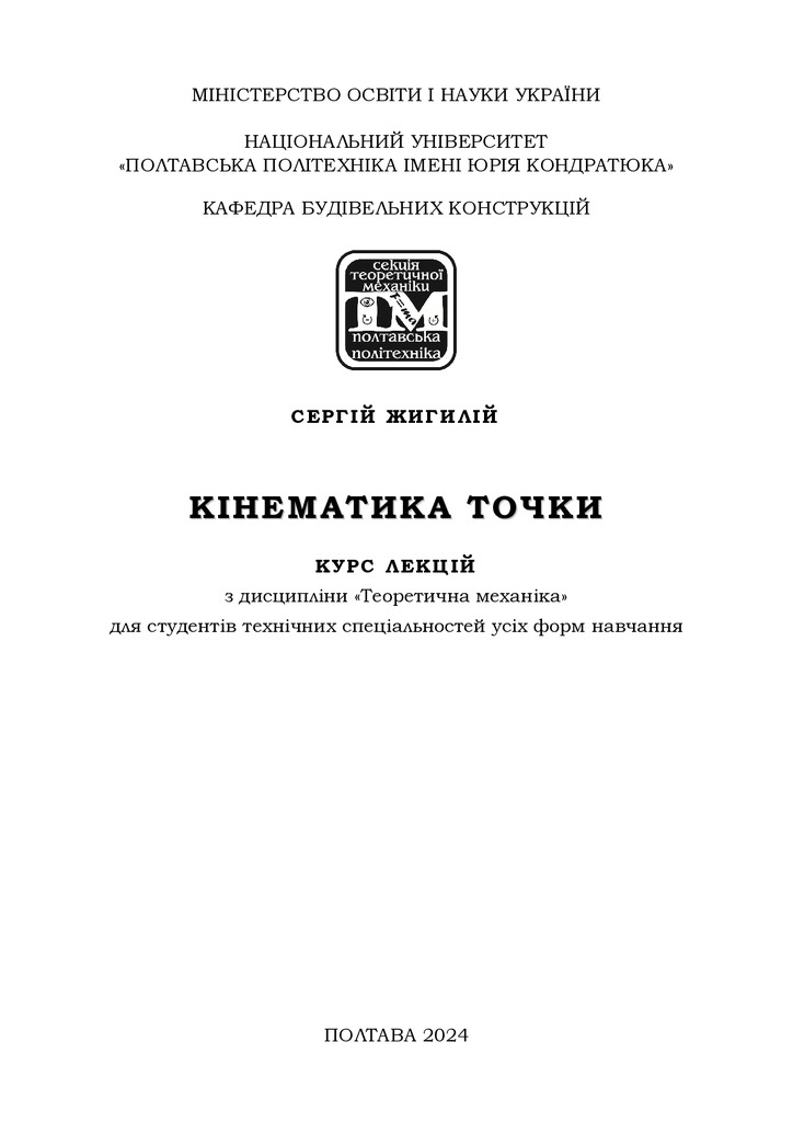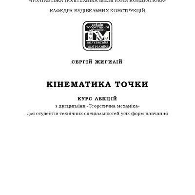 Кінематика точки: курс лекцій з дисципліни «Теоретична механіка» для студентів технічних спеціальностей усіх форм навчання першого (бакалаврського) рівня вищої освіти