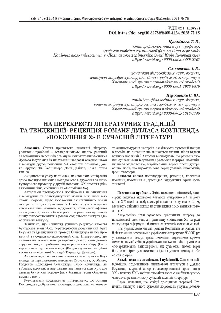 На перехресті літературних традицій та тенденцій: рецепція роману Дуґласа Коупленда «Покоління X» в сучасній літературі