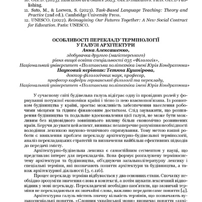 Стаття 2025/08/25Особливості перекладу термінології у галузі архітектури