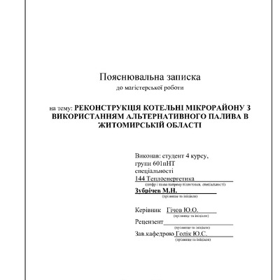 Реконструкція котельні мікрорайону з використанням альтернативного палива в житомирській області