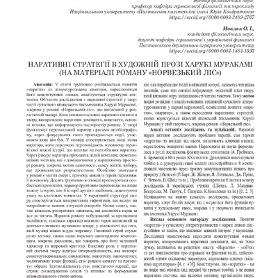 Стаття 2025/11/20Наративні стратегії в художній прозі Харукі Муракамі (на матеріалі роману "Норвезький ліс"